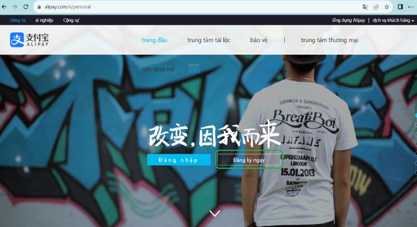 Bước 1: Truy cập đường link đăng ký tài khoản Alipay bằng Google Chrome