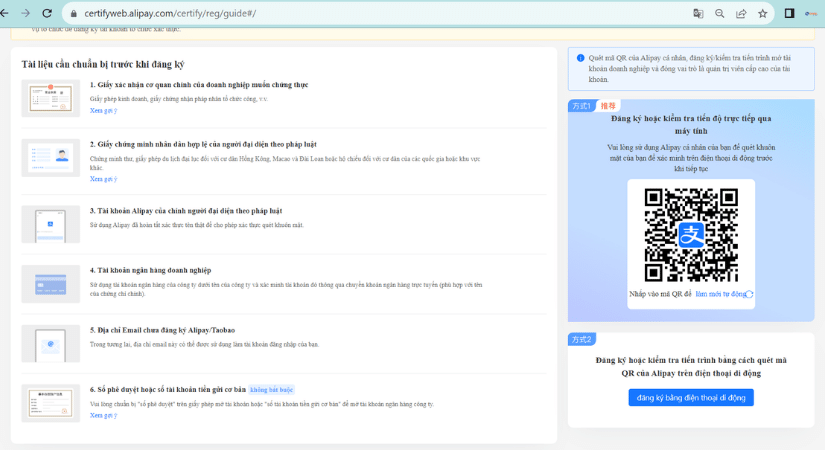 Những giấy tờ cần chuẩn bị đối với tài khoản Alipay cho doanh nghiệp
