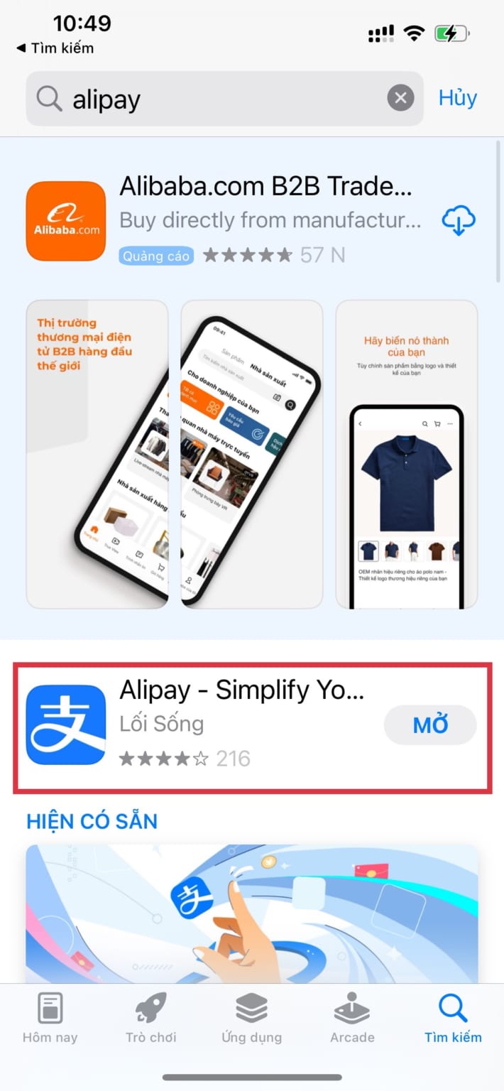 Để tạo tài khoản Alipay trên điện thoại, các nhà kinh doanh cần tải ứng dụng Alipay về điện thoại trên CH Play hoặc App Store.