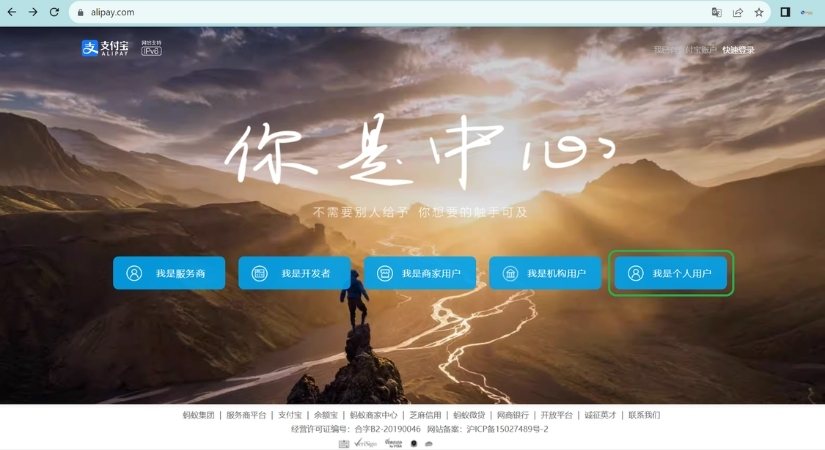 Truy cập trang chủ Alipay và lựa chọn tài khoản cá nhân