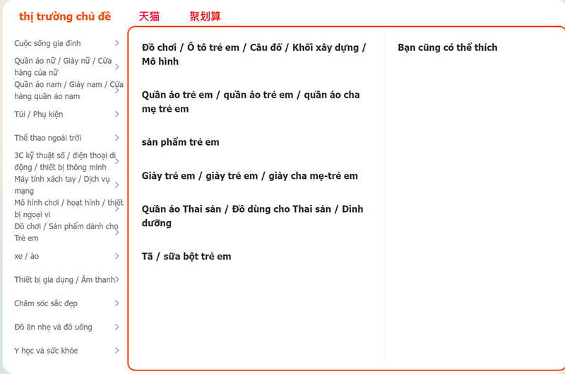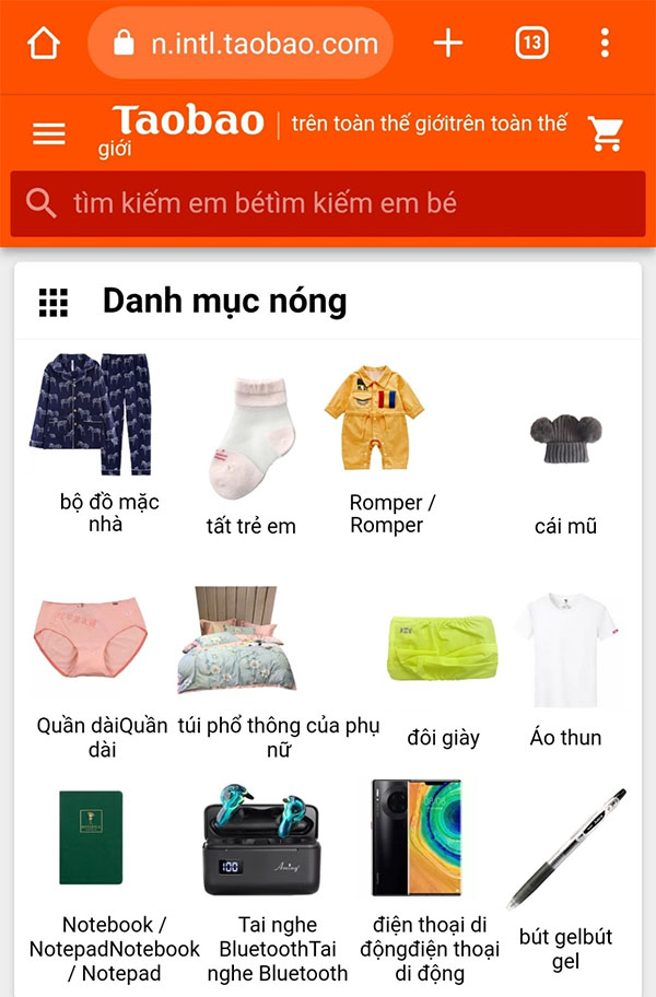 Cách tìm kiếm đồ trên Taobao thông qua danh mục sản phẩm