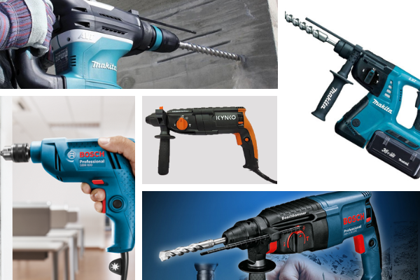- Công dụng: Là thiết bị với một đầu mũi khoan dùng để khoan bê tông hoặc khoan các lỗ trên bề mặt vật liệu khác nhau.